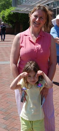 一个小女孩得到法轮功学员送的莲花,赞道:“太美了,我要给我姐姐带一只莲花。”孩子奶奶以前听说过法轮功被中共迫害,看到独立广场上学员正在做功法演示,吃惊地说:“这么平和的功法在中国竟被迫害?太可怕了!谢谢上帝保佑,美国有自由,都来美国吧!”