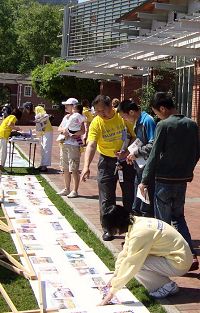 ![]() 大陆游客观看展板,了解法轮功真相。 |