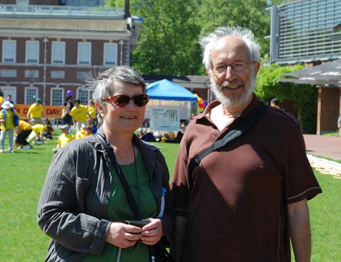 一对来自法国的夫妇,被学员优美大方的功法表演所吸引,当他们听说法轮功在中国被迫害的事情,更加钦佩法轮功。他们说,一个正在遭受迫害的团体,能表现出如此的平和、大度和博爱的精神,真是令人钦佩。博比(Bombey)先生说, 我们支持法轮功,支持中国的人权!