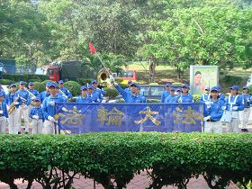 五月十日早晨,新加坡天国乐团与马来西亚天国乐团在怡保市政厅前的广场上联合举行了定点表演,连续演奏了《法轮大法好》、《法鼓法号震十方》、《法正乾坤》、《送宝》、《欢乐颂》等乐曲,声势浩大,鼓号震天,使怡保的民众亲身感受到了大法的殊胜和天国圣乐的美妙。