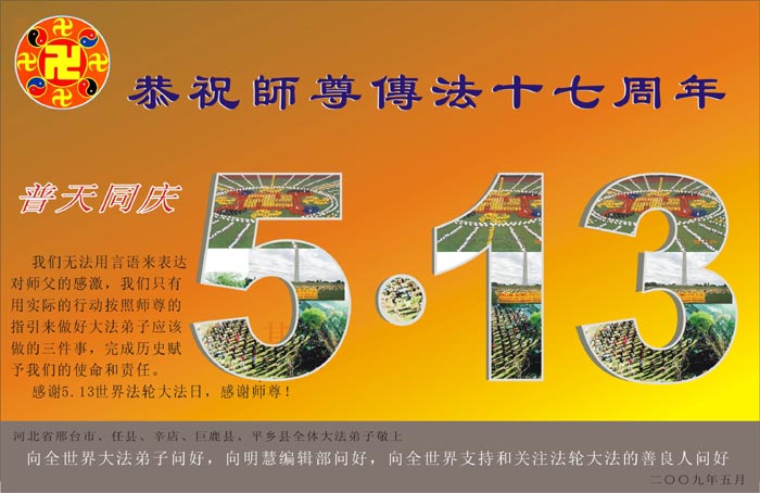 • 大陆各行业大法弟子恭贺师尊华诞暨“五·一三”大法日