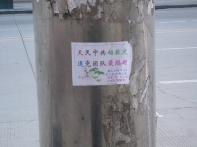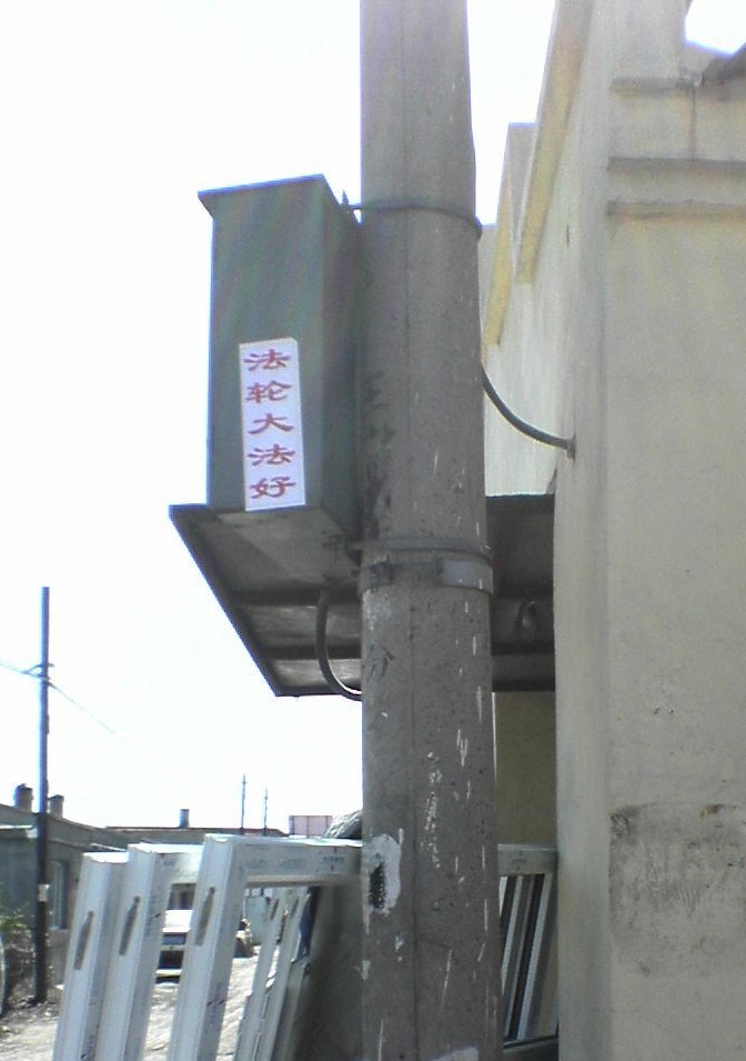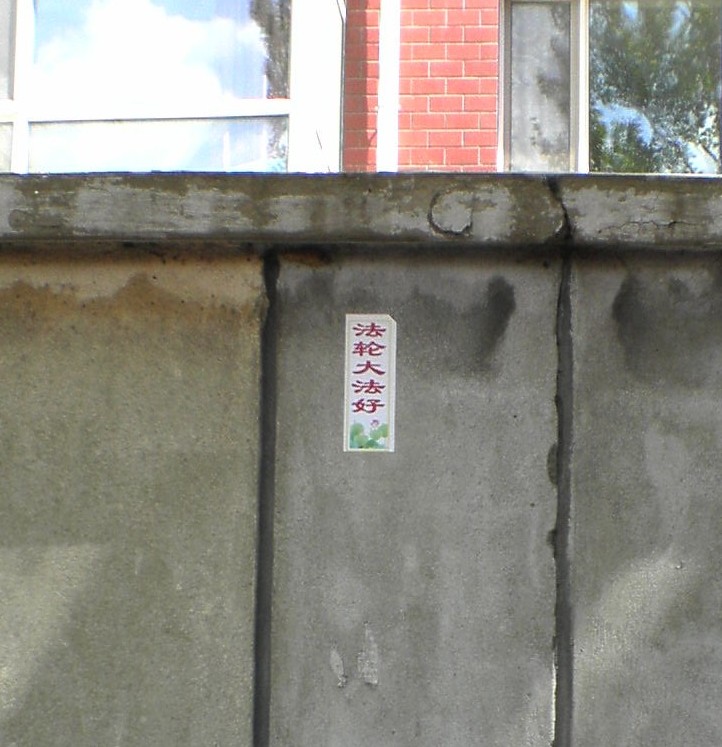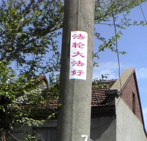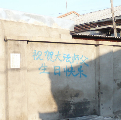 2009年5月11日,中国东北某地的大法弟子以粘贴的形式,祝伟大的师尊生日快乐,弘扬大法,庆祝世界法轮大法日。