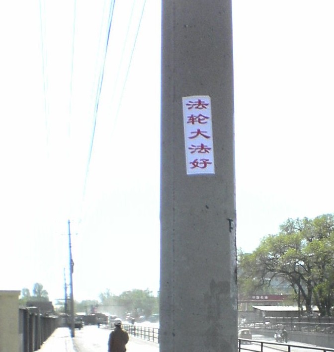 大陆东北某地出现的粘贴黑龙江某地区真相标语和粘贴在大陆某地繁华地段写的一些庆祝大法日的标语
