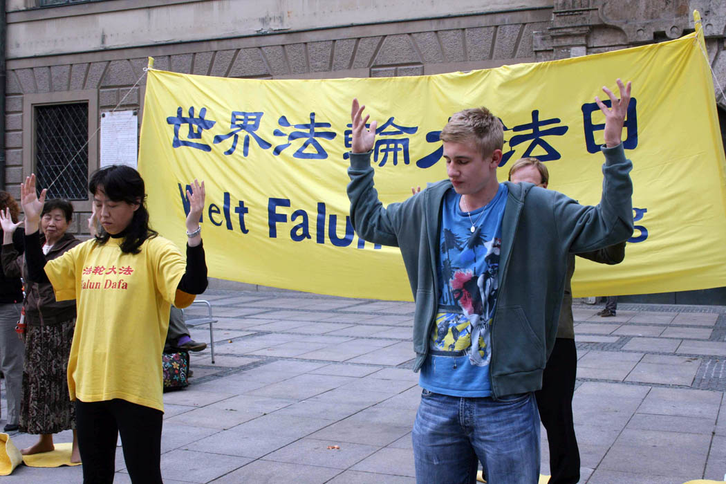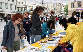 ![]() 驻足了解法轮功的慕尼黑民众 |