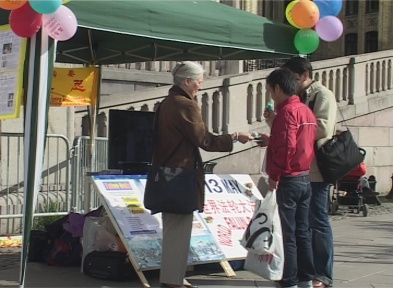 许多有缘人放慢匆匆的脚步,在了解了大法真相后带着美好的感受离开。