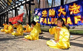 Anna是一个体能教师,恰好路过奥林匹克公园,看到身穿金黄色炼功服的法轮功学员在炼动功,她被吸引住了。“我感受到了他们身上很强的能量。”她询问:“到哪里可以学到法轮功?”得到满意的答案后她才离开。过了不多久,办完公事后Anna又转了回来,静静观看法轮功学员的静功演示。