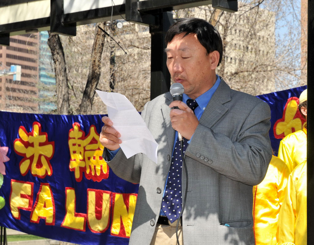 “尽管在中国,法轮功学员还在遭受着严酷的迫害,但是,法轮大法却在反迫害中走向了世界,洪传一百多个国家,修炼者上亿。在此,我们特别感谢加拿大民众站在了正义的一边。”
