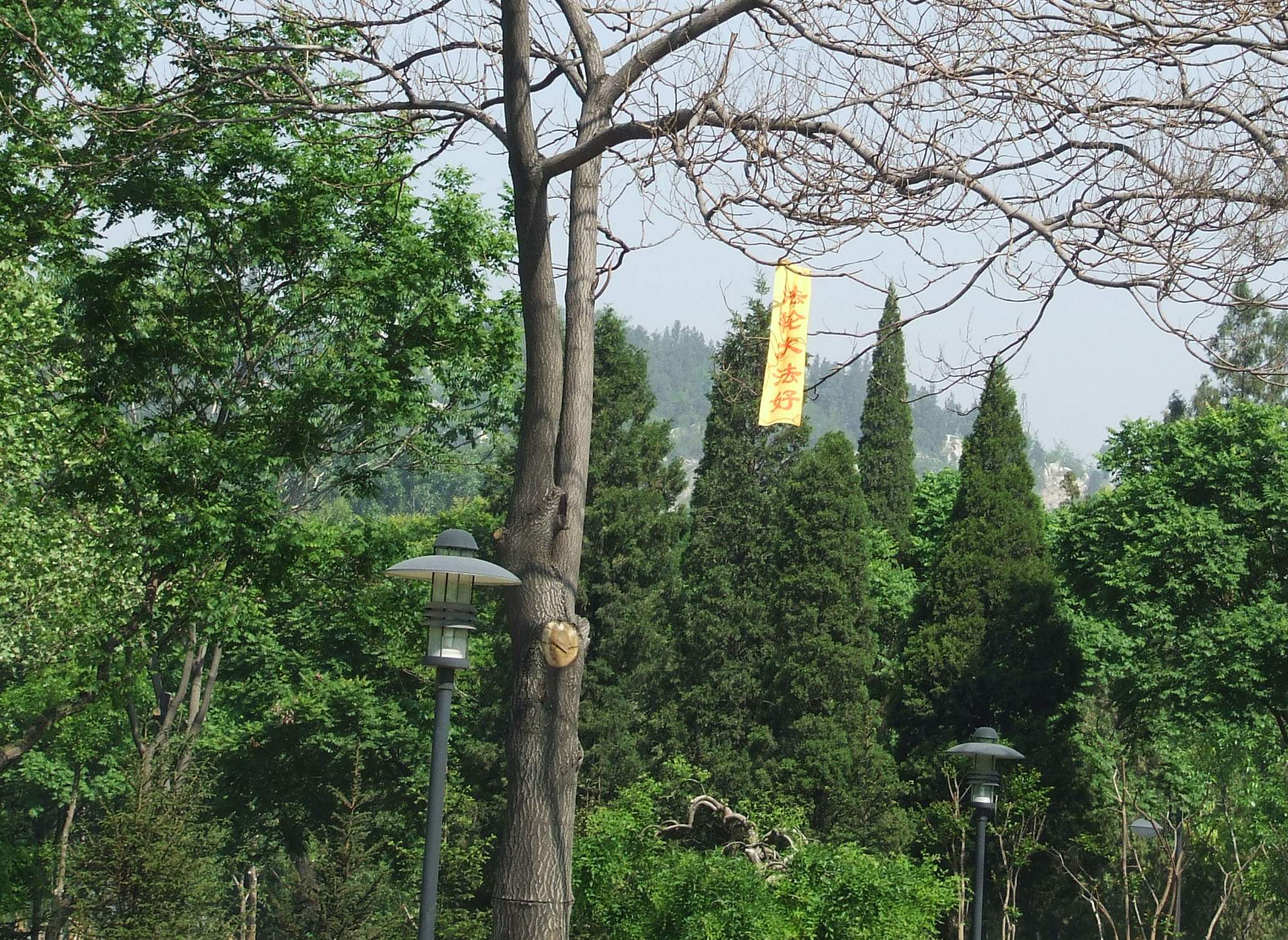 在黑龙江某地四•二五晚上挂出的条幅