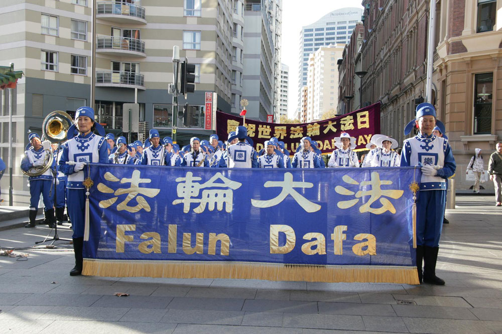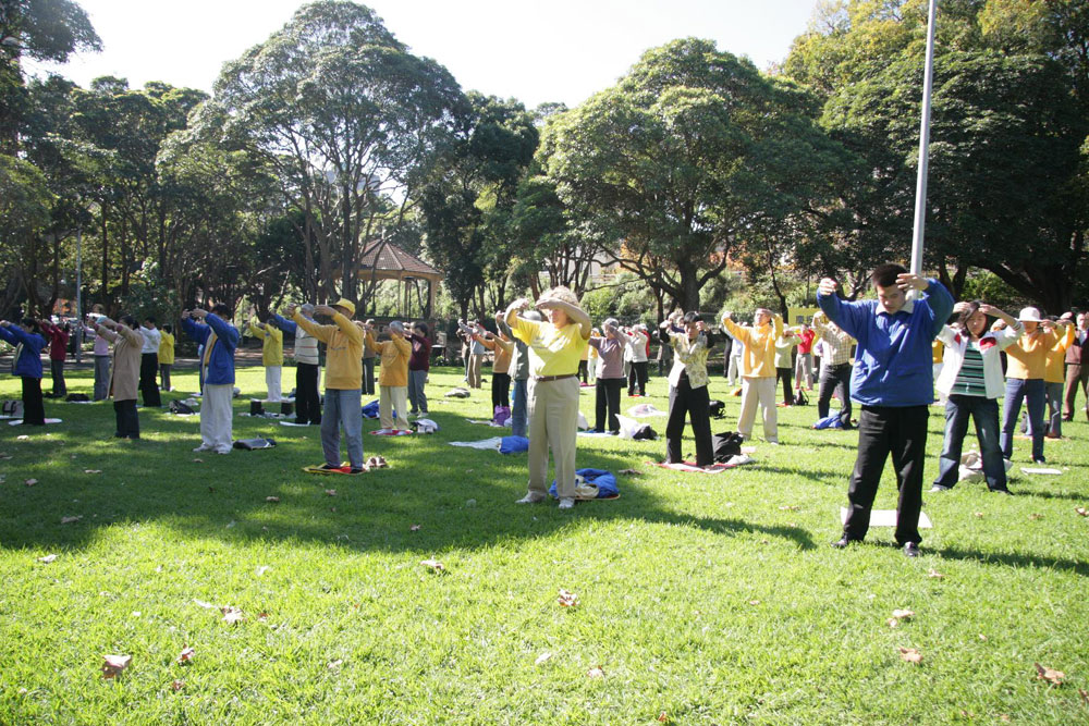 ![]() 悉尼法轮功学员在莫尔公园(Belmore Park)集体炼功 |