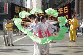 游行结束后在唐人街的庆祝集会上,法轮功学员们表演了小合唱、朗诵、舞蹈还有天国乐团的演奏、表达对师父慈悲救度的感恩及传达真相,吸引了许多当地民众围观欣赏及共同庆祝,特别是来自大陆的华人和游客,纷纷拿起相机将这历史的珍贵瞬间保存下来。也有不少华人在主动索要真相资料,签名声援法轮功,热闹非凡的场面覆盖了整个中国城。