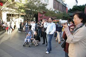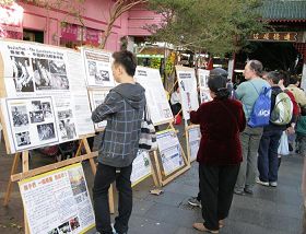 ![]() 在唐人街的真相展吸引许多路人停下了脚步观看。 |