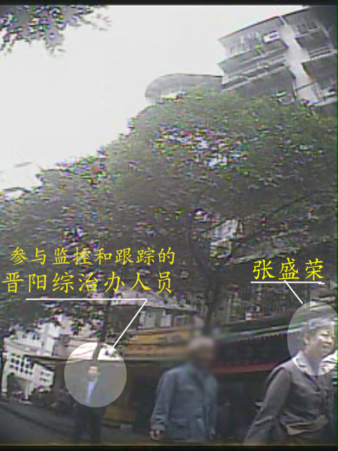 张盛荣自2005年起一直被晋阳综治办非法跟踪、骚扰,尤其是上个月其聘请的代理律师被打一事受到海内外广泛关注之后,晋阳综治办更是指派六个人分成三班,24小时对其严密监控。张在家时,监控的人便坐在椅子上,守在张所在的单元门口;张一出门,便有人“贴身跟随”。