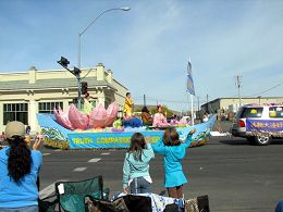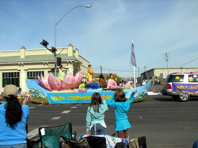 ![]() 二零零七年九月二十九日,法轮功学员参加美国华盛顿州亚基马(Yakima)市一年一度的游行,“法船”花车造型美丽,深受欢迎,荣获一等奖。 |