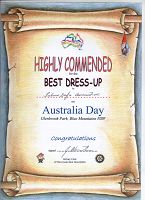 二零零八年一月二十六日法轮功学员应多个社区市政厅邀请分别参加了在各社区举办的澳洲国庆的庆典活动。其中之一的庆典大游行在悉尼西面蓝山山脚的一个叫格兰布 (Glenbrook)的小镇上举行,主办单位向法轮大法学会和新唐人队伍颁发了“服装最佳奖”。