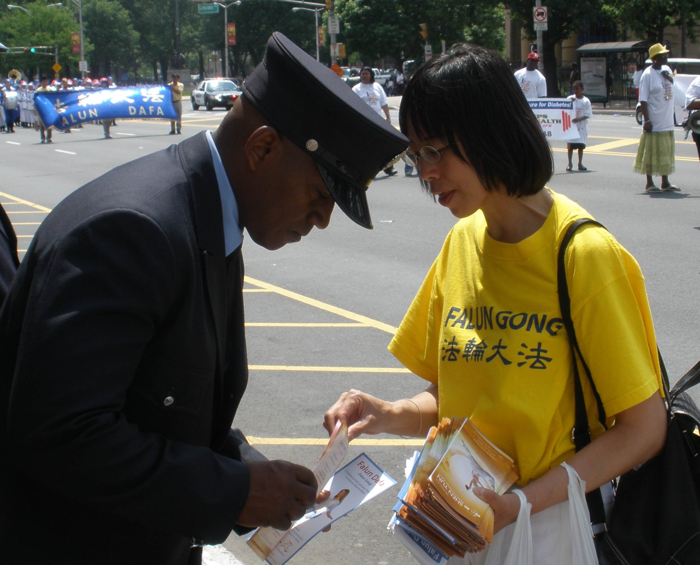 观众劳拉(Lora)女士对法轮功的修炼既炼功祛病健身又按照“真、善、忍”提升人的道德特别感兴趣。“我特别喜欢法轮功,虽然这是我第一次接触他们。”劳拉一边阅读手里的法轮功简介材料,一边连声说:“我要认真地多了解。”