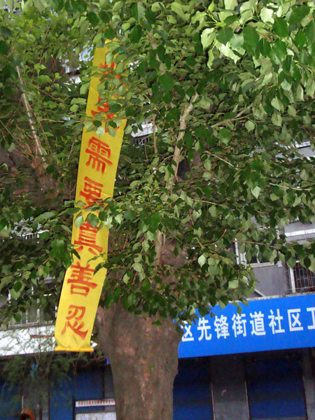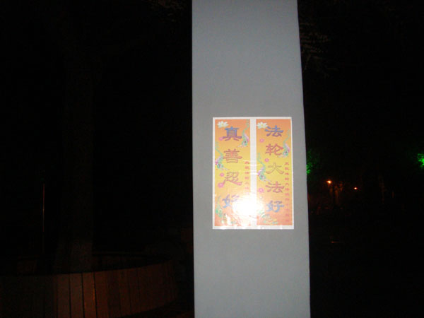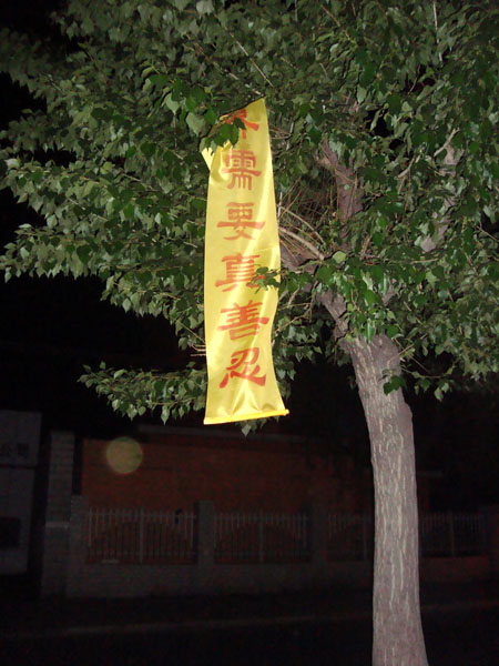 【明慧网二零零九年五月二十七日】下面是黑龙江某市“五·一三”世界法轮大法日期间挂出的条幅。
