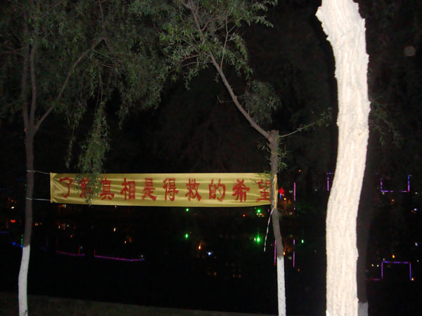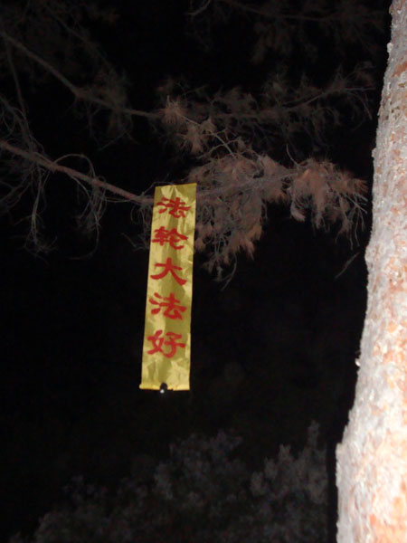图片:中国北方城市公园出现大量“法轮大法好”条幅