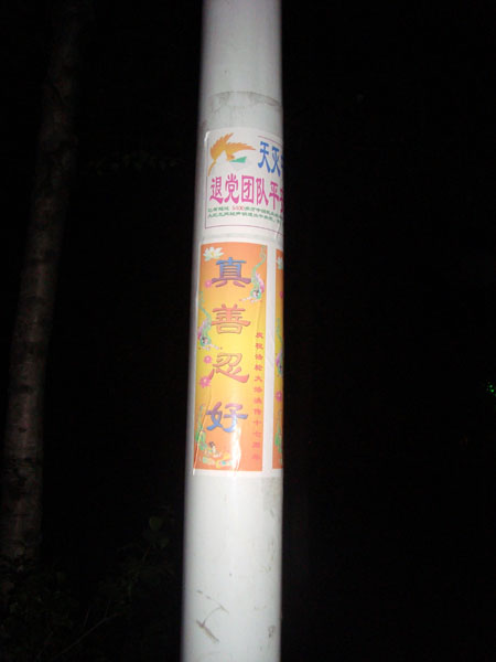 照片:辽宁省某县出现的真相条幅和不干胶