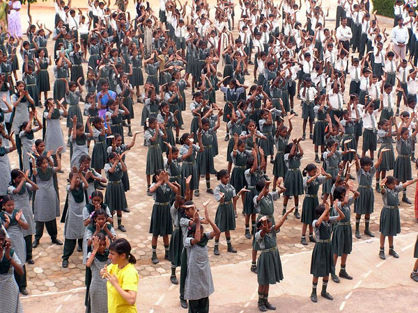 另一所SRI K.V.英语学校距班加罗尔市超过一百公里,共有八百位学生,校长表示,法轮功非常值得推广,现在全校集体炼功。