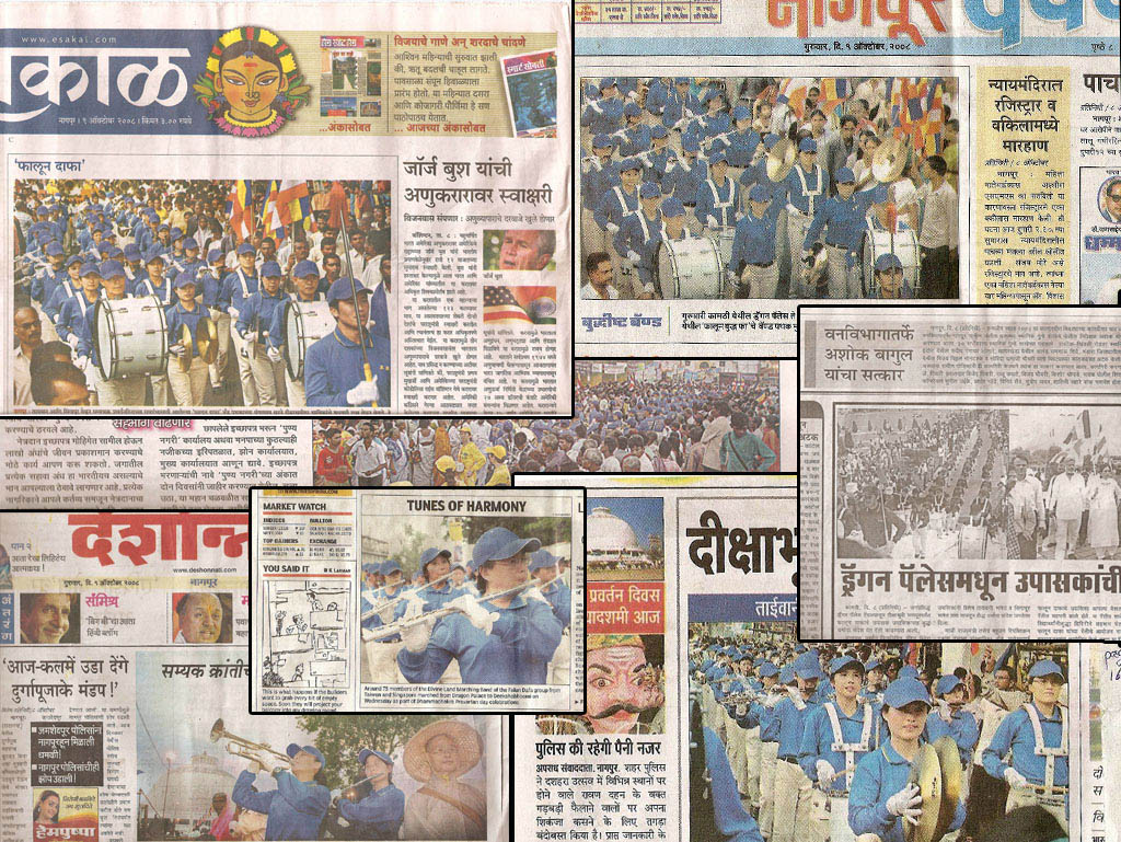 天国乐团也将法轮大法的祥和美好传给印度。二零零八年十月七日,由台湾、马来西亚和新加坡法轮功学员所组成的亚太天国乐团受邀到印度迈索尔城市(Mysore),为每年一度的重要节庆达瑟拉节(Dasara)演奏。当天有四、五十万群众和各国和尚、喇嘛聚集在这里,是难得的佛教庆典。天国乐团为这善良的国度带来了“法轮大法好”的讯息,所到之处,每每引起热烈的回应,成为达瑟拉节的焦点。