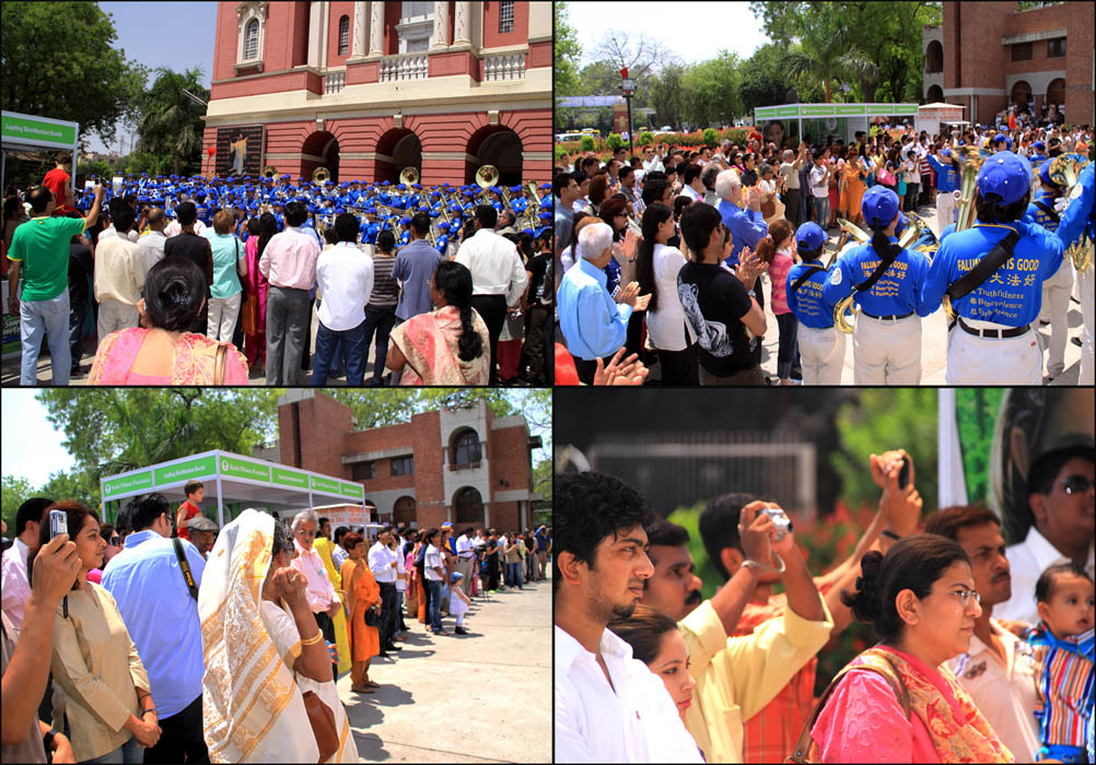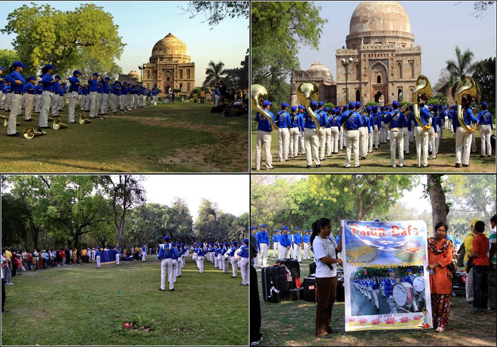 二零零九年四月十二日至十三日,来自台湾、日本、马来西亚、新加坡四国的天国乐团约一百四十几位团员,到印度首都德里(Delhi)弘扬法轮功,把法轮大法福音带到北印度。