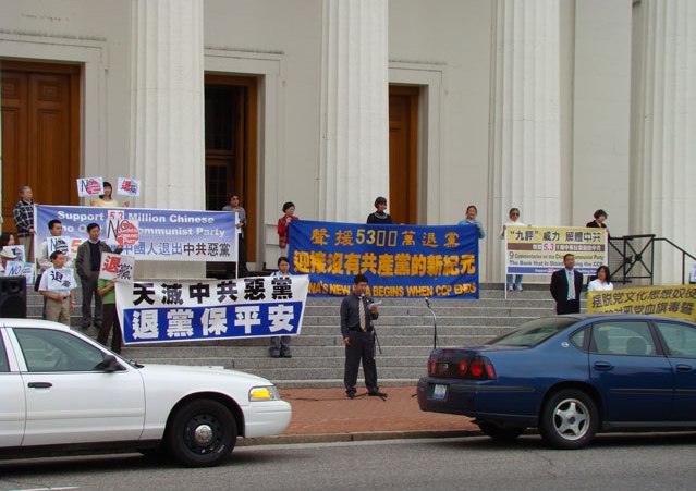 ![]() “退党传播真相之旅”在伊州州府春田市老议会大厦前 |