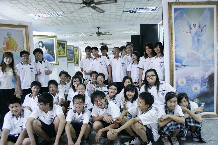 翁老师:每天带学生来看画展时,看到导览人员随时都带着笑容、充满和善,很感动。特别携来学生的反馈。学生有疑问,美展的画作包含了有道教、佛教,又有西方的神等,各个宗教好像都有。后来她理解了,原来指导法轮功学员修炼的这本书《转法轮》中有提到,“这个宇宙中有两大家,佛、道两大家,排除哪一家都构不成完整的宇宙,都不能说是完整的宇宙,所以我们这里有道家的东西。有人讲了:那也不只是道家呀,还有什么基督教、儒教,其它的教等等。我告诉大家,儒教修炼到了极高层次上,它是归为道家的;而西方有许多宗教修炼到高层次上之后,它是归为佛家的,它是属于佛家一个体系的。就这么两大体系。”
