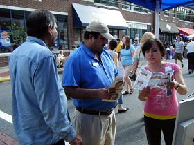 在活动快要结束时,有位在美国银行工作的女士径走到展位前,非常激动地问,“为什么中共要迫害法轮功?”原来这位女士一直在关注着中共对法轮大法弟子的这场迫害,她表示她还注意到在去年奥运前,中共对法轮功的迫害尤为残酷,她实在无法理解一个政府怎能做出这样的事来。
