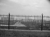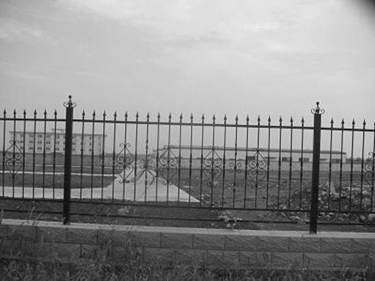 ![]() 监区警卫室和大门(大门后出现的楼是所谓“教学楼”) | ![]() 恶警主办公楼西侧(后面的楼是教学楼) | ![]() 生产车间的马路和小门 |