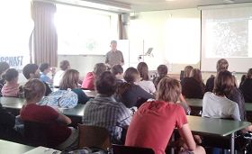 这是CFG高中的一堂宗教课。带课老师请来了国际人权组织的瑞姆(Roemer)先生和法轮功学员滕·施为格女士来给大家谈谈发生在中国的人权,重点是西藏问题和法轮功遭受迫害的情况。