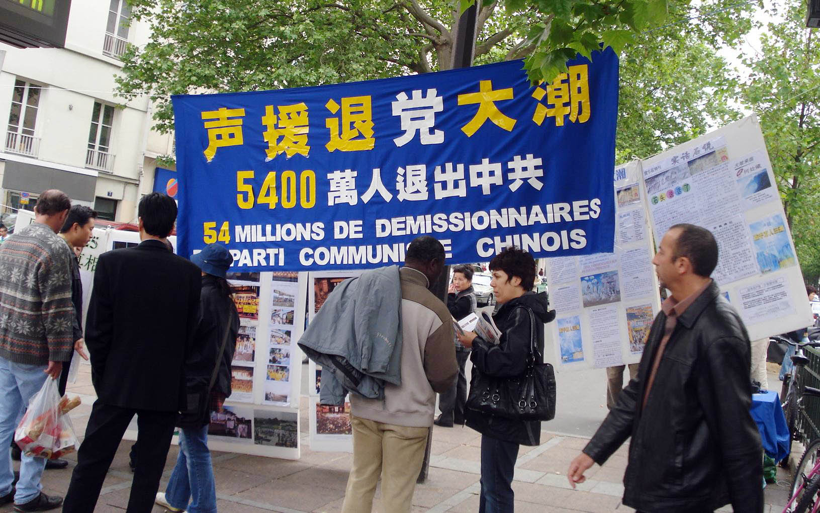 周末的美丽城聚集了众多华人,在喧闹嘈杂的街区,穿梭来往的人群中,传来了希望之声国际广播电台的录音节目,号召所有加入过中共邪党、团、队的人们,赶快退出,抹去邪灵兽印,迎接光明美好的未来。清亮的声音,娓娓道来,上下地铁的人们都不禁停住脚步,专注倾听,有的索要一份《大纪元时报》和《九评共产党》。当场,有三十人声明退出中共及其相关组织。一个年轻的中国小伙接过报纸,高兴地说:“我最爱看大纪元了。”