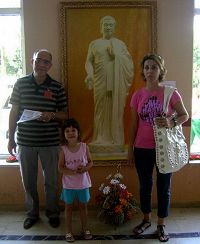 ![]() 药剂师赛达•阿哲奥和家人在最喜爱的作品《佛像》前合影留念 |