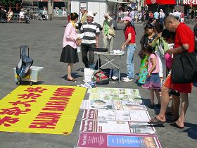 ![]() 丹麦哥本哈根市政厅广场上,路人驻足了解法轮功真相 |