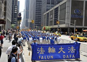 ![]() 六千法轮功学员在纽约曼哈顿举行盛大游行,展示法轮大法好。 |