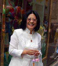 ![]() 手持精美的小莲花的玲珠来自犹他州,修炼法轮功后无病一身轻 |