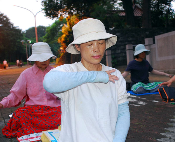 黄奕臻二零零一年修炼法轮功以前,因为脑神经衰弱长年失眠。一天早晨她睡不着觉,带儿子去公园散步,看到一群人在炼功,旁边一位学员告诉她:“法轮功是性命双修的功法,修炼主元神。”这句话引起她的好奇,她拿起摆在木椅上的《转法轮》,看到书里写着“真正往高层次带人”几个字,这句话给她触动很大,就借回去看,许多以前不能了解的问题,终于在书里找到了答案。看了书却舍不得拿去还,结果这本书就在家里搁了两三个月,越看里面的东西越多,也了解如何修炼,于是她就自己在家里炼功。过去心脏不好、胃溃疡以及最严重的脑神经衰弱,经常要吃药,炼法轮功以后,她体悟师父说的真正修炼的人没有病的法理,把药停了,她现在已有了健康的身体。