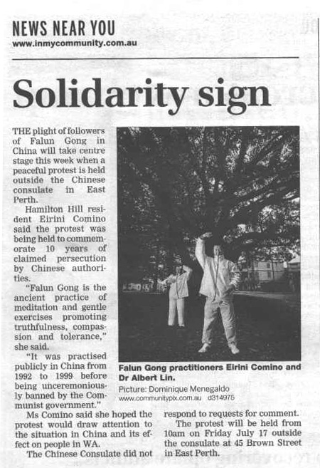 西澳至少有十二家当地报纸在活动之前,已经报导了法轮功学员此次的反迫害活动,有至少数十万当地民众,相当于四分之一西澳人口,可以得知这个消息。