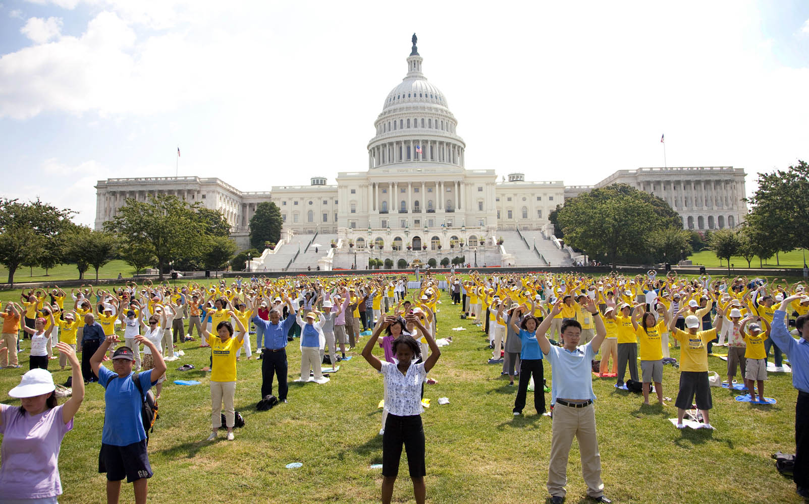 二零零九年七月十六日下午,在美国首都华盛顿DC国会山前,上千名法轮功学员举行了反迫害十周年集会,要求制止中共迫害。数十位美国国会议员、非政府组织代表和各界人士到集会现场支持声援。自二零零零年起,海外法轮功学员每年七月二十日前夕在美国首都华盛顿DC举行的系列反迫害活动,已成为海外法轮功学员反迫害活动的一种标志。