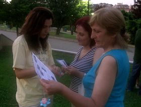 ![]() 很多人象这个女孩(右)一样主动要求学习法轮功功法 |