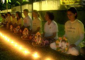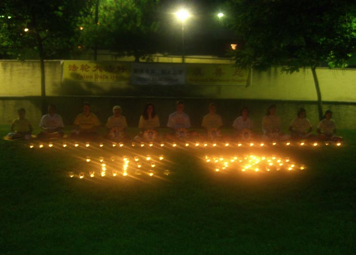 ![]() 学员们伴着盏盏烛光悼念被中共迫害致死的同修 |