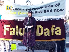 他说:“今天我要强调的是这群善良的法轮功学员们在过去十年所做出的贡献,揭露中共极权的邪恶罪行。你们告诉了全世界发生在中国的真实内幕,帮助早日解体中共邪恶政权。今天我要给予我对法轮功的支持与感激,我想全世界都将了解你们的杰出贡献。”“中国成千上万的人民正遭受着苦难,不只西藏人民和维吾尔人,而是所有在中共暴政土统治下的人都在受苦,但他们最终都将被像法轮功学员这样的人们所拯救。”