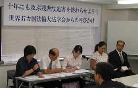 ![]() 七月十七日下午,日本法轮大法学会在东京举办记者会 |