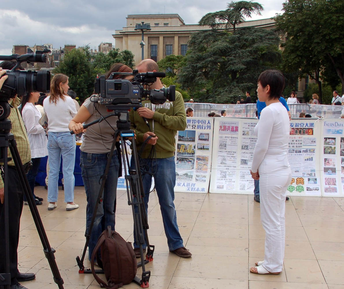 法国电视五台和法新社的记者来到现场录音录像,记录了全过程,还分别对法轮功学员作了现场采访。