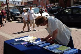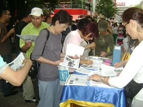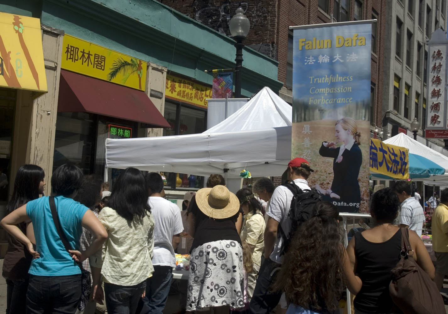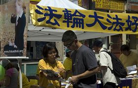 刘燕和高桂芬阿姨,一直在法拉盛《九评共产党》点讲真相,她们是一九九三年,九四年得法的北京大法弟子。她们表示,今天是七二零,十年前中共开始大肆抓捕法轮功修炼者。今天我们来到这里,是要告诉世人中共对法轮功的迫害。十年了,世人的态度也发生了很大的变化。迫害头几年,在曼哈顿发传单时人都很麻木。现在不一样了,好象明白过来了。去年法拉盛一伙人能搞得老百姓不敢和我们走近,不敢接报纸。现在回过神了,又来支持我们了,现在他们主动要报纸看了。