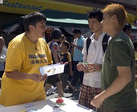 ![]() 马克(Mark)(中)听完法轮功真相后表示想要学功 |