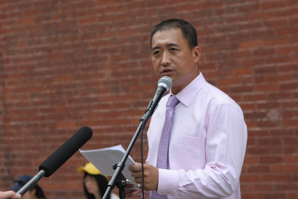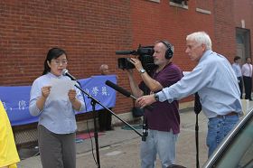曾遭中共非法关押,获释后脱离中共封锁,于去年八月成功赴美的清华大学土木工程系副教授须寅第一次参加海外的“七•二零”反迫害活动。