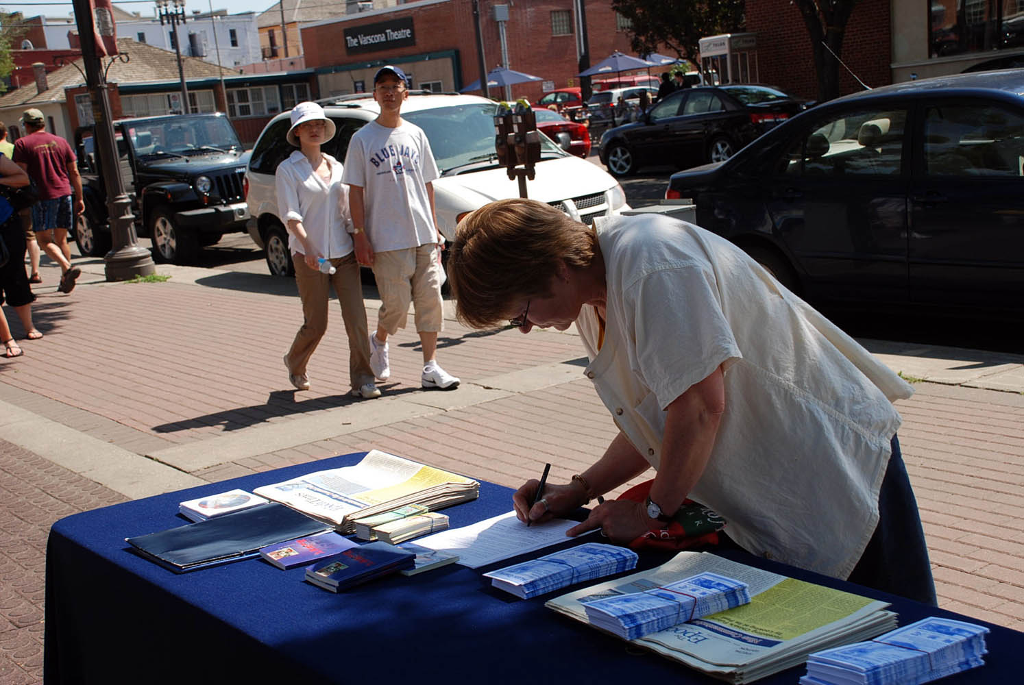 大华府地区的一位网络工程师尤金•韦斯帕(Eugene Wesper)先生在炼功现场拍了很多照片,他说要把这些照片放在他的个人网站上。韦斯帕先生说,他听说过法轮功,也听说过法轮功学员在中国大陆遭受迫害,他曾看见过法轮功女学员在狱中遭受殴打和迫害的图片,他知道这些人受到伤害。他说:“虽然我做不了太多,但是当我跟别人交谈时,当他们谈到中国的经济时,我会告诉为此所付出的代价,告诉他们在中国发生的这一切。”