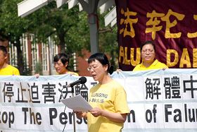 ![]() 法轮功学员在纽约中领馆前集会,呼吁制止迫害。 |