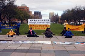 ![]() 法轮功学员在美国国会山国家广场大草坪集体炼功 |