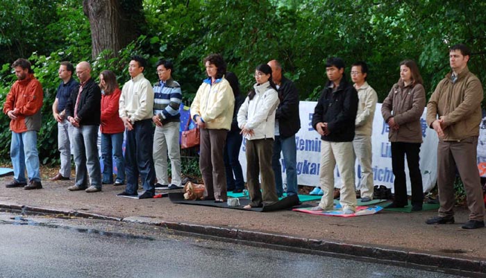 ![]() 德国汉堡法轮功学员在中领馆前抗议中共十年迫害 |